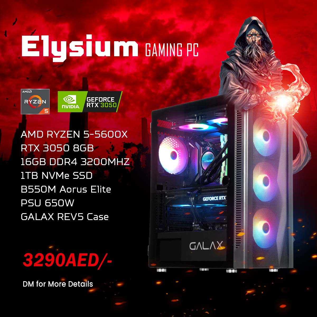 Elysium Gaming PC AMD Ryzen 5 5600X, RTX 3050 8GB, 16GB RAM, 1TB SSD, Windows 10, RGB Case