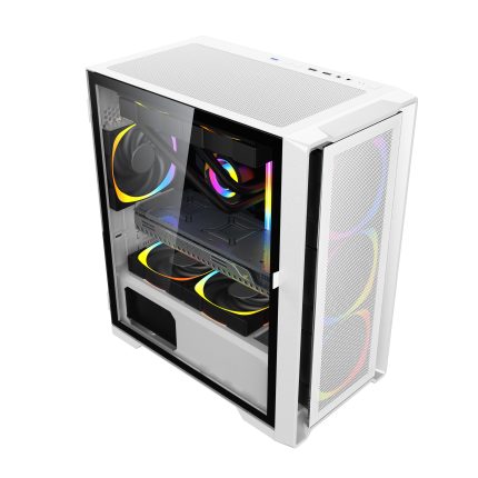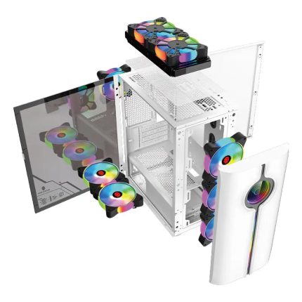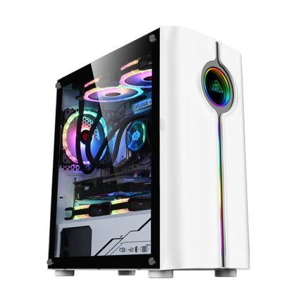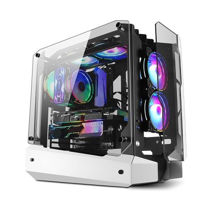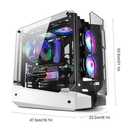 Ark ATX Mid-Tower PC Gaming Case, Non-Closed Case Tempered Glass Panel, 5 x Case Fans Installation Position – Front IO USB 3.0 Port, White – Not Include Fans