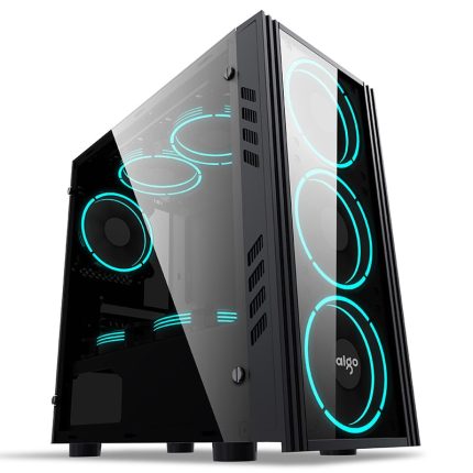 Aurora ATX/M-ATX/ITX Gaming PC Desktop Computer Case Black with Side Tempered Glass Panels with 6 Fan Support