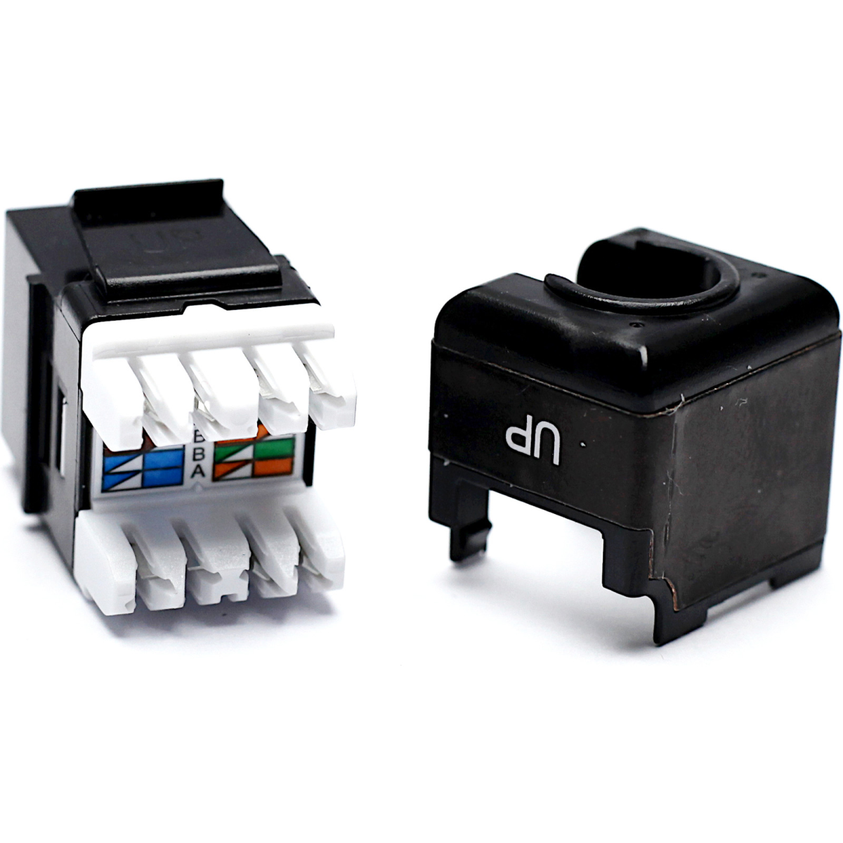 100-156-BK-24 Excel Category 6A (UTP) Unscreened Keystone Jack – Black (24-pack) 100-156-BK-24 Excel Cat6A UTP Unscreened Keystone Jack IDC Punch down Black, available as part of our range of excel cat6a keystone jacks for RJ45 network connections. Suitable for mounting in a range of housings from patch panels, faceplates and shutters, to floor boxes and work area distribution enclosures. The socket itself is housed in a high quality ABS plastic housing which opens at the rear to reveal the IDC termination points.