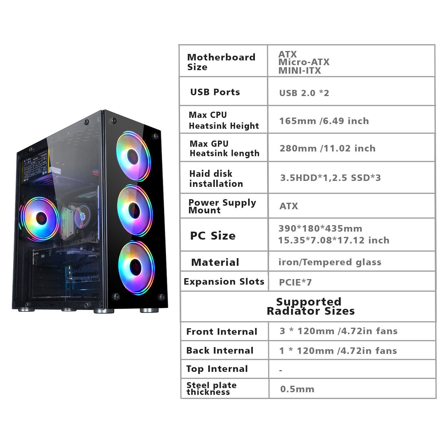 ✅ 4 Fan Support FRONT: 3*12CM REAR:1*12CM