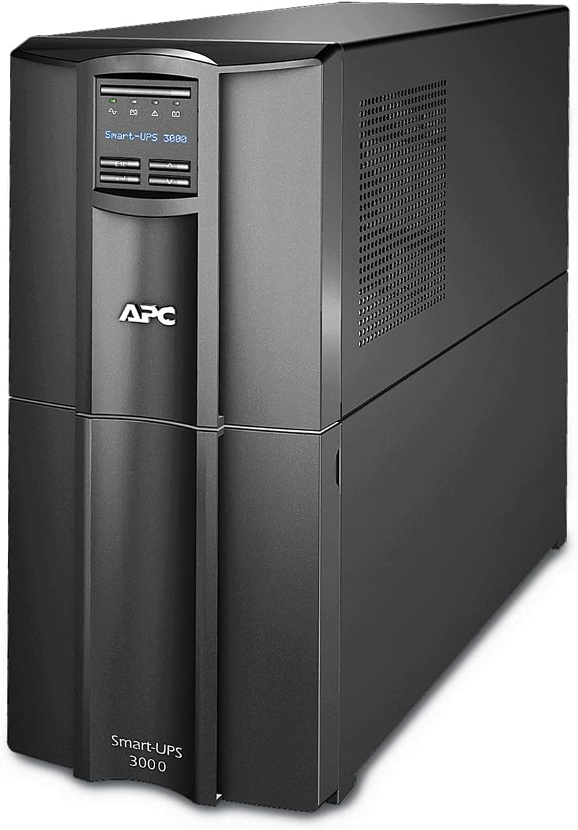 APC SMT3000IC This APC Smart-UPS is designed for IT professionals or network administrators to maintain business uptime and continuity. The 3kVA line interactive tower UPS provides pure sine wave power to support critical electronics during power disruptions. It comes with IEC 320 C20 input, BS1363A British and Schuko CEE 7/EU1-16P input cables, 8x IEC 320 C13 and 1x IEC 320 C19 outlets, and 2x IEC jumper cables. It offers cloud-based remote power monitoring, UPS firmware upgrades, remote diagnostics and proactive email notifications with recommended actions. It has a SmartSlot for optional Network Management Card that enables graceful shutdown of physical servers, virtual machines & HCI Clusters via PowerChute Network Shutdown.