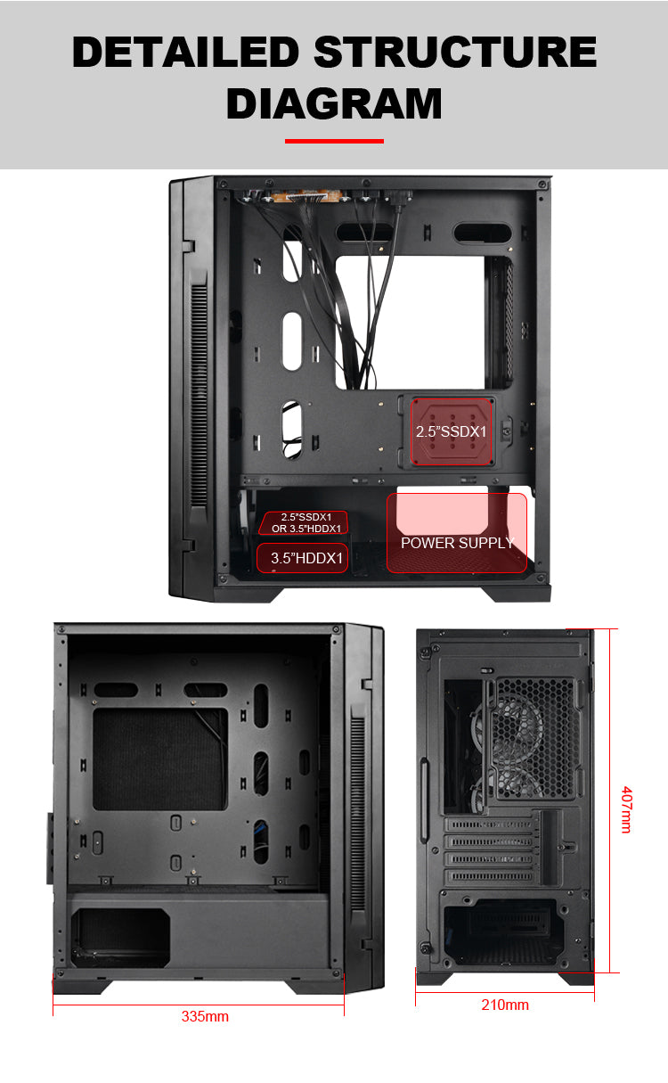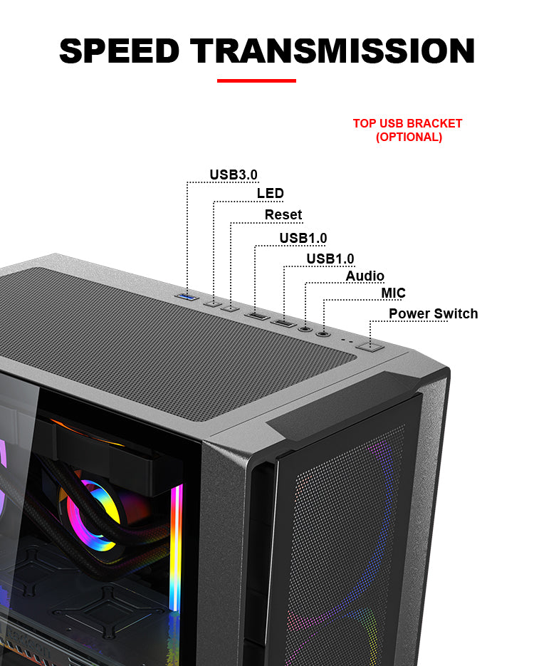 ✅ 6 Fan Support FRONT: 3x12CM REAR:1c12CM TOP: 2x12CM