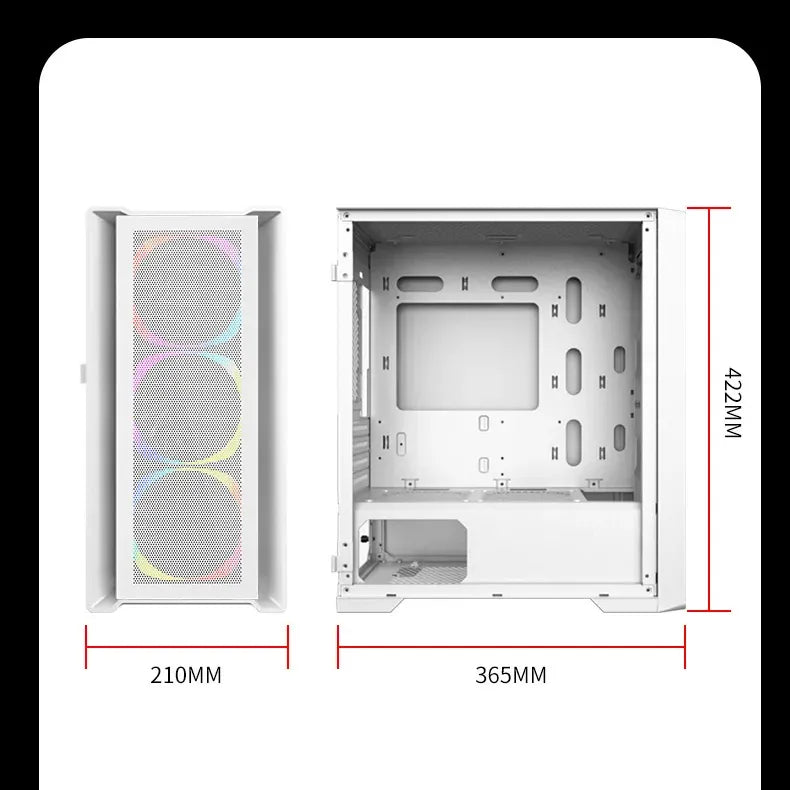 Aurora ATX/M-ATX/ITX Gaming PC Desktop Computer Case White with Side Tempered Glass Panels with 6 Fan Support