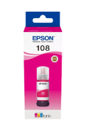 C13T09C34A EPSON 108 EcoTank Magenta ink bottle High-quality photo printing This six-colour, dye-based ink set delivers smooth tonal gradations and deeper, more natural blacks, detailed high-contrast images and natural skin tones. The 70ml ink bottles provide an abundant supply of ink so you can print lots of professional-looking, glossy photos at your convenience without worrying about costs or running out of ink. Unleash your creativity Feel free to print your photos without worrying about the cost with this ink series. From the first set of inks included with your EcoTank printer, you’ll have enough ink to print up to 2,100 (10x15cm) photos.