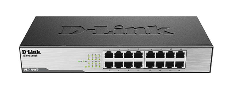 D-Link 16 Port Switch DES1016D With the D-Link 16-Port Fast Ethernet Unmanaged Switches, you can easily expand your business or home network by adding more computers and devices, each achieving speeds up to 200 Mbps per port in full-duplex mode. Quickly and securely connect employees working in small offices with one another and with all of the servers, printers, and other devices they use.