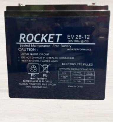 ES 28-12 ROCKET EV Battery Brand ROCKET EV Battery Battery Model EV 28-12 (12V-28Ah) Battery Capacity 28 AH Battery Type lead Acid Battery