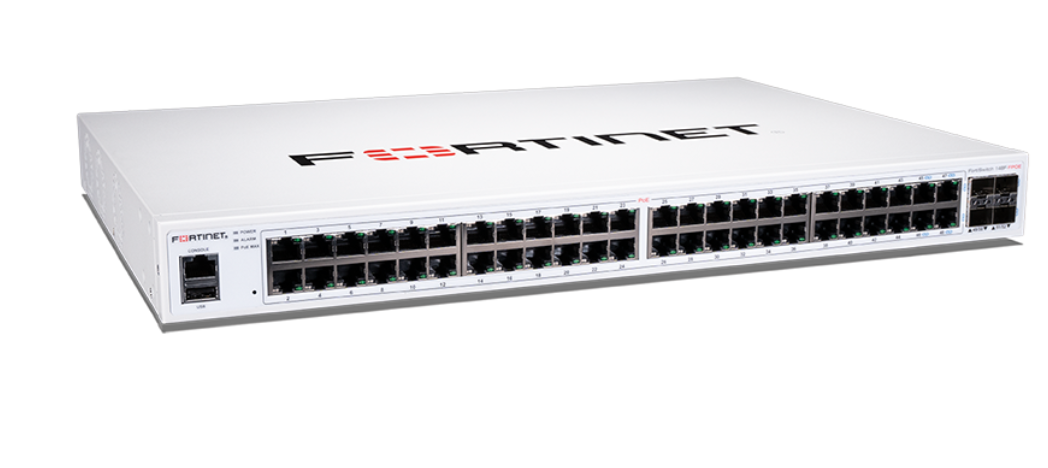 FS-148F-FPOE FortiSwitch-148F-FPOE FortiSwitch-148F-FPOE is a performance/price competitive L2+ management switch with 48x GE port + 4x SFP+ port + 1x RJ45 console. Port 1- 48 are POE ports with automatic Max 740W POE output limit (48 port 802.3af or 24 port 802.3at) Tightly integrated into the Fortinet Security Fabric via FortiLink, FortiSwitch can be managed directly from the familiar FortiGate interface. This single pane of glass management provides complete visibility and control of users and devices on the network regardless of how they connect. This makes the FortiSwitch ideal for SD-Branch deployments with applications that range from desktop to data center aggregation, enabling businesses to converge their security and network access.