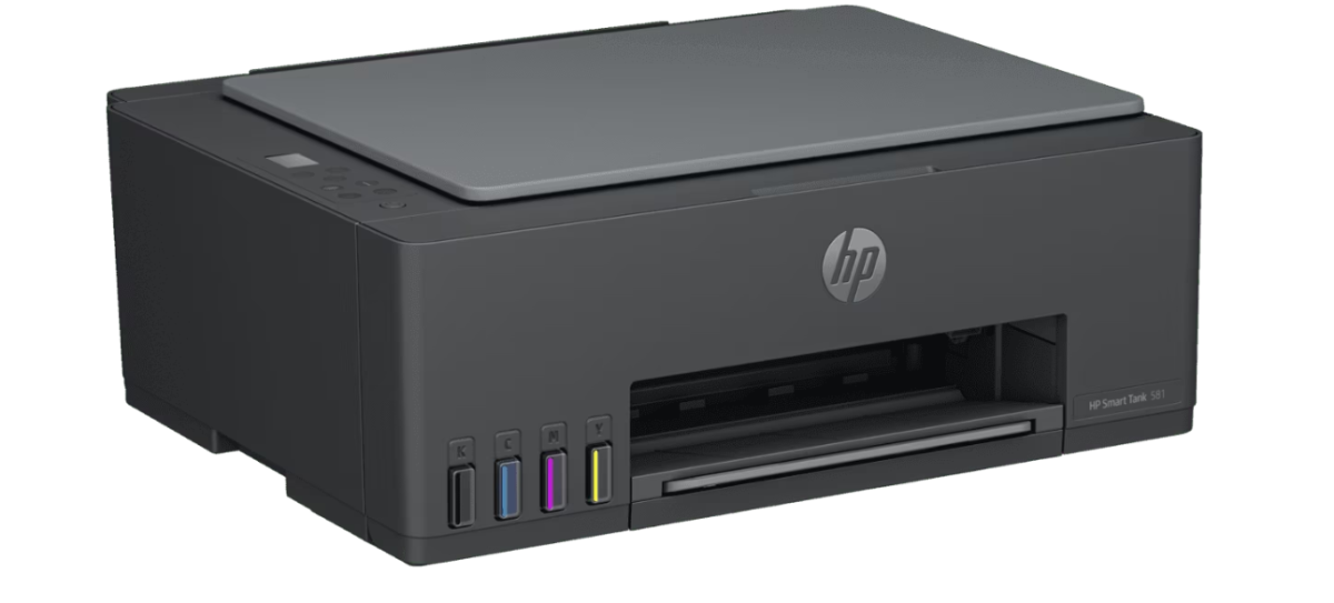 Hp Printer Smart Tank 581 All-in-one A4 Colour Smart Tank All-in-One Printer, Perfect for Home Print, Copy and Scan Print Speed up to 12 ppm (black) and 5 ppm (color) USB, Wi-Fi, Apple AirPrint Printer for your Print, Scan and Copy needs All-in-one printer with Print, Scan and Copy with dedicated ID copy smart button. Modern Experience Compact Design, Guided Setup, Smart Guided Control Panel & Low on Ink Sensing High Volume Printing Get up to with 18,000 black and 6000 Color Pages in the box