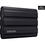 MU-PE2T0S/AM Samsung T7 Shield MU-PE2T0S – SSD – 2 TB – USB 3.2 Gen 2 Ideal for outdoor use, the Samsung 2TB T7 Shield Portable SSD features a rubber protected exterior and an IP65 rating, providing content creators with both performance and durability. The rugged design and advanced outer elastomer protect it from drops while still being lightweight and portable. Moreover, the T7 Shield offers users quick performance and little downtime with read and write speeds of up to 1,050 MB/s and 1,000 MB/s respectively. Its USB 3.2 Gen 2 Type-C port provides wide compatibility.