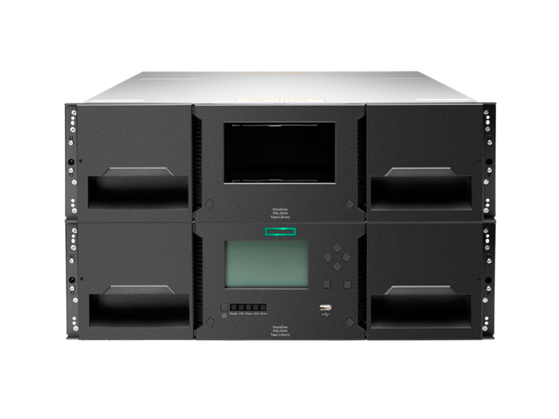HPE StoreEver MSL3040 Tape Library offers 13 cartridge slots or 600 TB3 of capacity per 1U of rack space, scaling from 40 to 640 slots with a single expandable library; there is no need to replace it as your requirements grow.