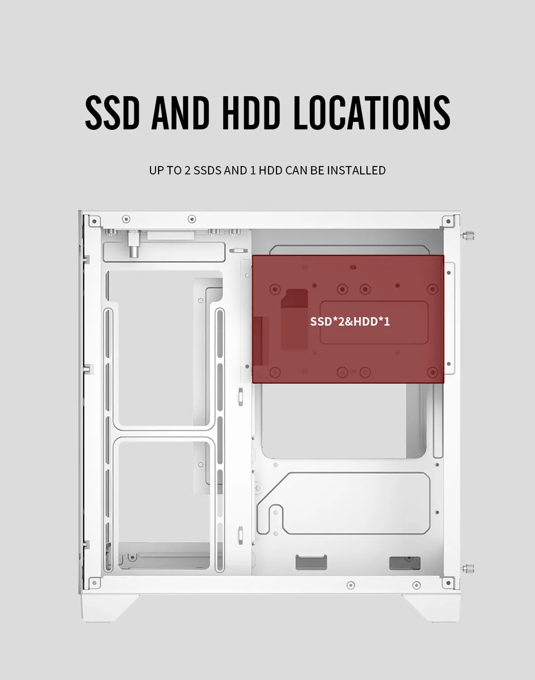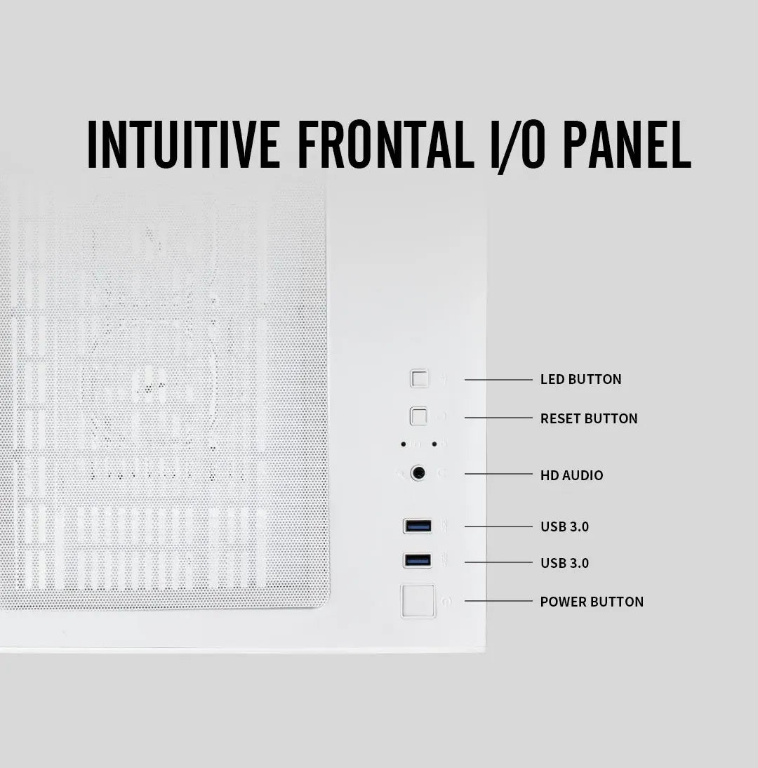 Robin Cube M-ATX/ITX Gaming PC Desktop Computer Case White with Side Tempered Glass Panels with 7 Fan Support (Fans not including)