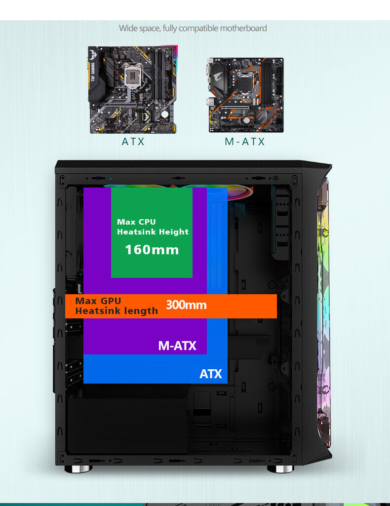 ✅ 6 Fan Support FRONT: 3x12CM REAR:1c12CM TOP: 2x12CM