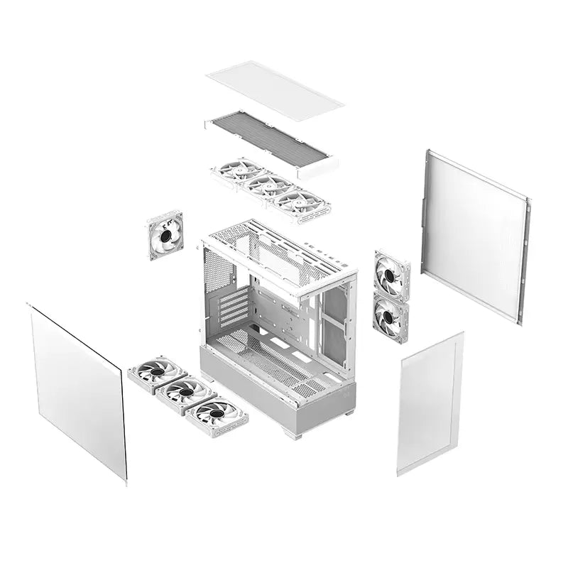 This premium gaming PC case is designed for gamers and PC builders in the UAE who value performance, aesthetics, and functionality. It supports both ATX and Micro-ATX motherboards, offering flexible configuration options for various builds. The tempered glass side panels add a sleek, modern look while showcasing your internal components with style. Featuring comprehensive RGB fan support, it allows installation of up to eight fans — Top: 3×120mm, Rear: 1×120mm, Bottom: 3×120mm, and Side: 2×120mm — ensuring excellent airflow and customizable lighting effects to match your setup. The case’s optimized ventilation design keeps your system cool during long gaming sessions, while the spacious interior provides ample room for cable management and easy installation of hardware components. Built with durable, high-quality materials, it guarantees long-term stability and reliability. The front I/O panel offers convenient access to USB ports and power buttons, enhancing day-to-day usability. With its clean and minimalist design, this case fits seamlessly into any modern gaming setup or professional workspace. Supporting VGA clearance up to 410mm and CPU cooler clearance up to 165mm, it’s perfect for powerful gaming builds and high-performance systems across Dubai, Abu Dhabi, and the wider UAE market.