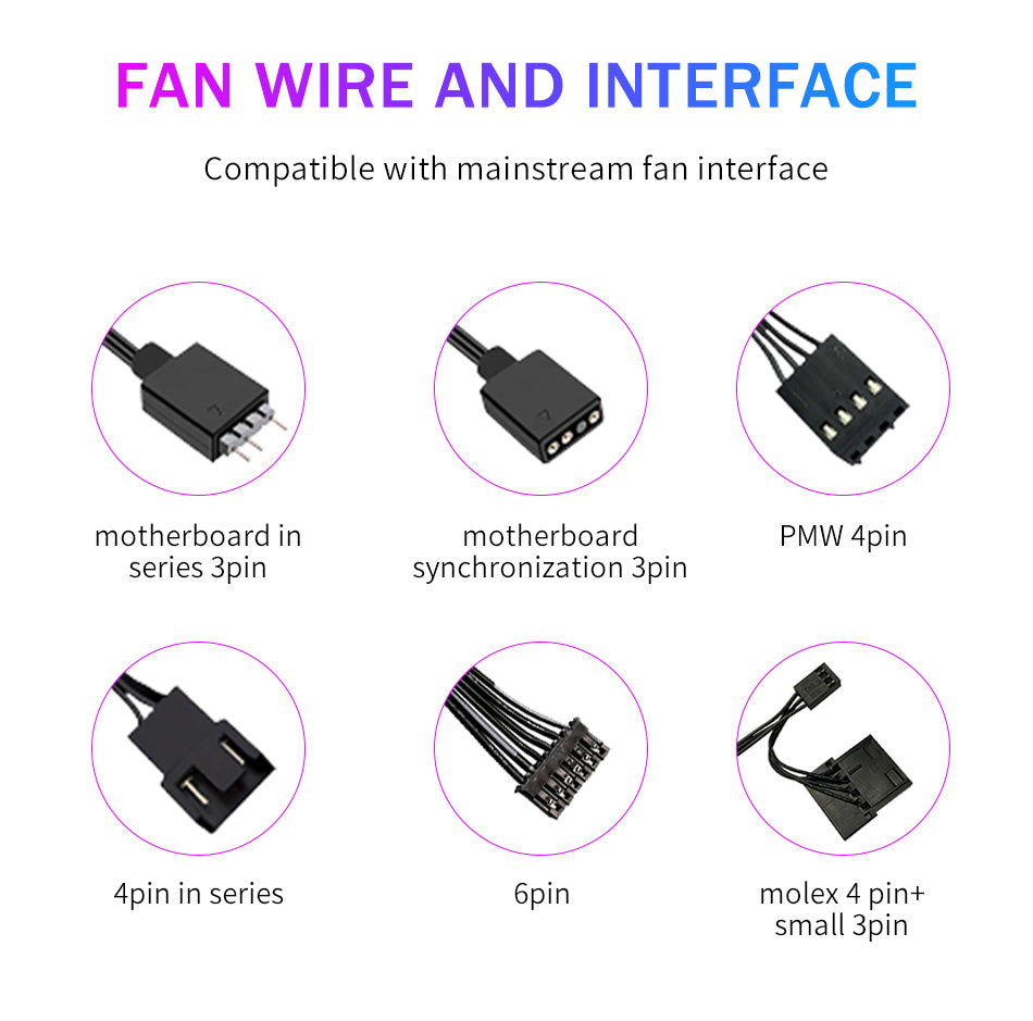 TrueNort Pc Case Fan 120mm RGB 6Pin 12V 3W Black, Single Fan