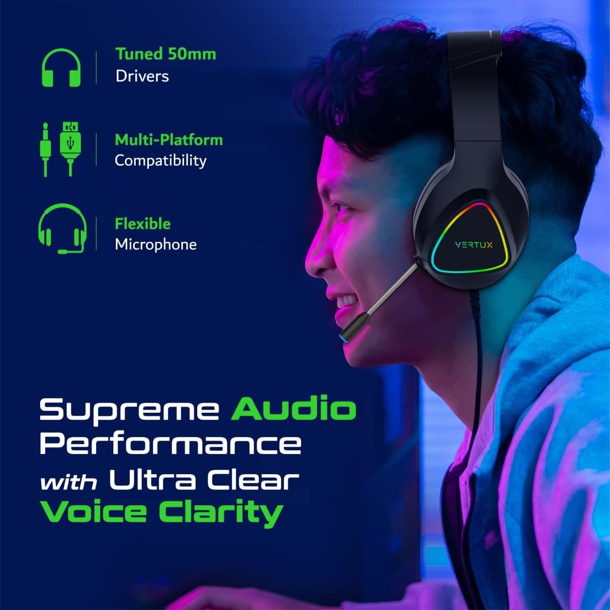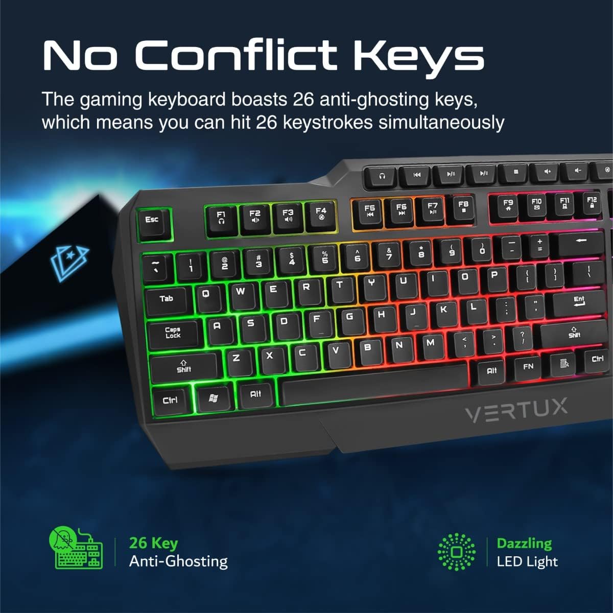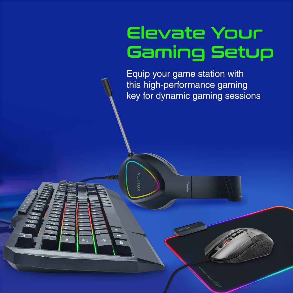 Vertu 4 In 1 Gaming Starter Kit, Rainbow Backlit Wired Gaming Keyboard & Mouse Combo, RGB Foldable Gaming Mouse Pad, Pro Gaming Over Ear Headset | Vertux kit