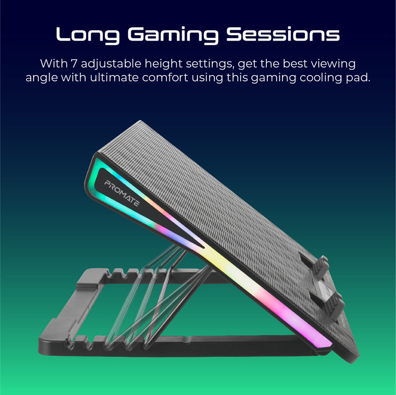 Vertux Glare Quiet RGB Cooling Laptop Stand With Rainbow LED Lights, Fan Speed -800RPM ± 10%, Fan Airflow -47CFM, Fan Noise -22dB, With Multi Height Adjustment | VE.GLARE.NC