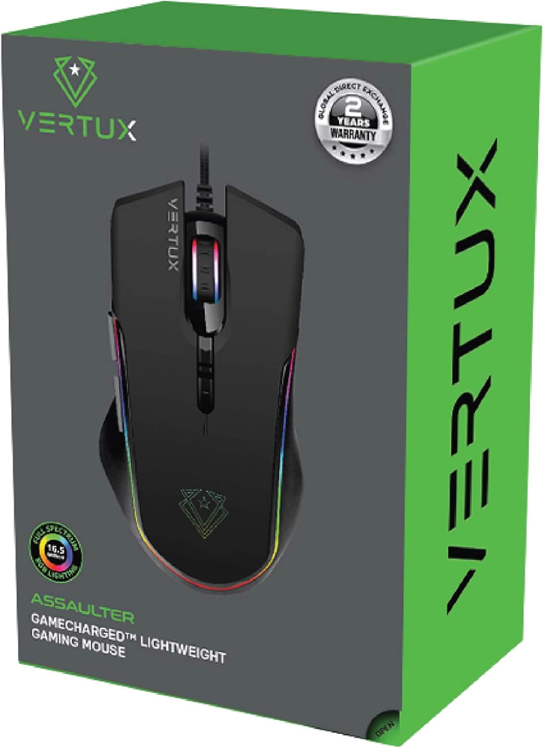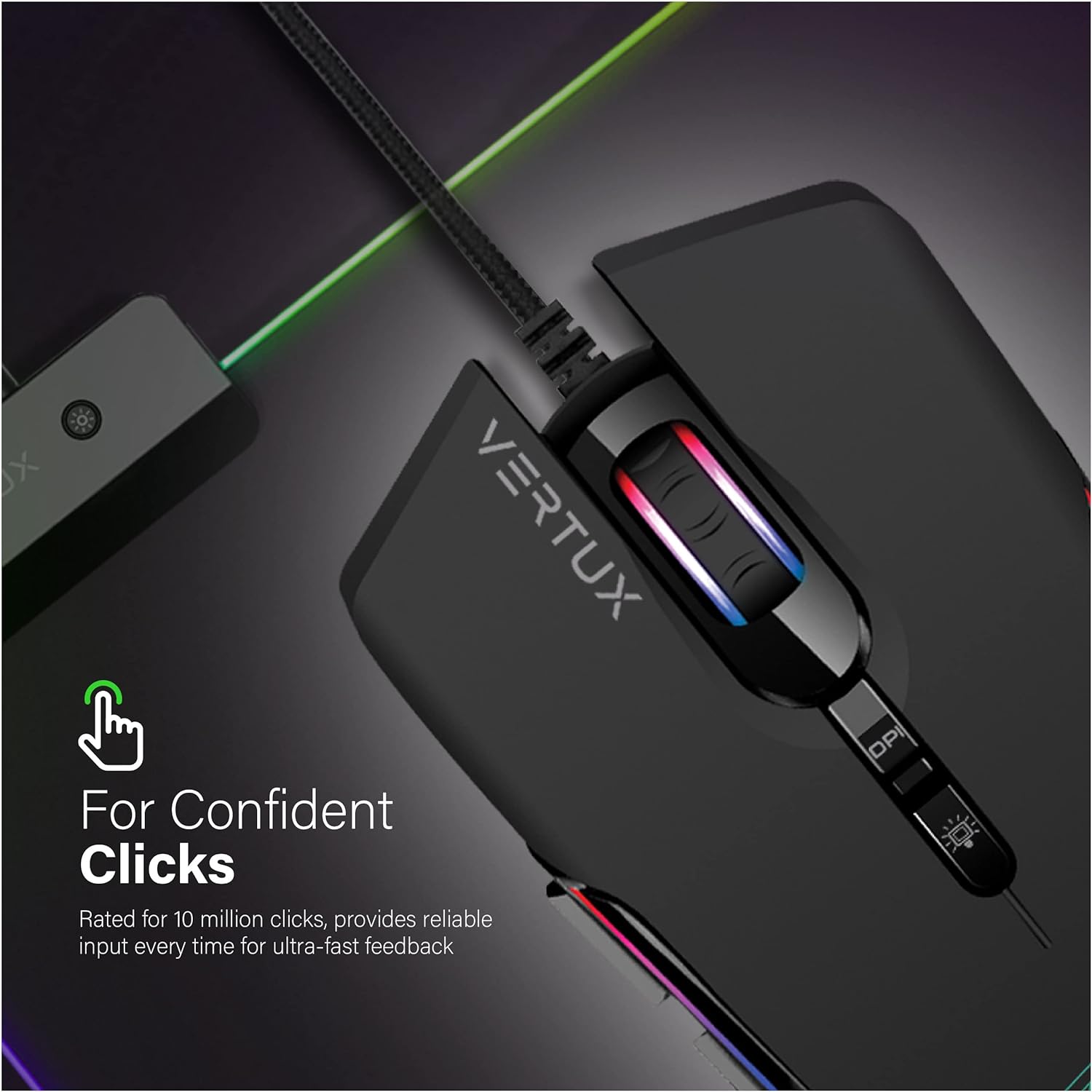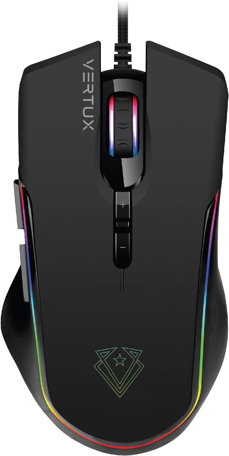 Vertux Assaulter Gaming Mouse Up to 10000 DPI Optical Sensor Lights Wired Optical Gaming Mouse Ultra Fast 10 Million Clicks Lightweight RGB Gaming Mouse Black
