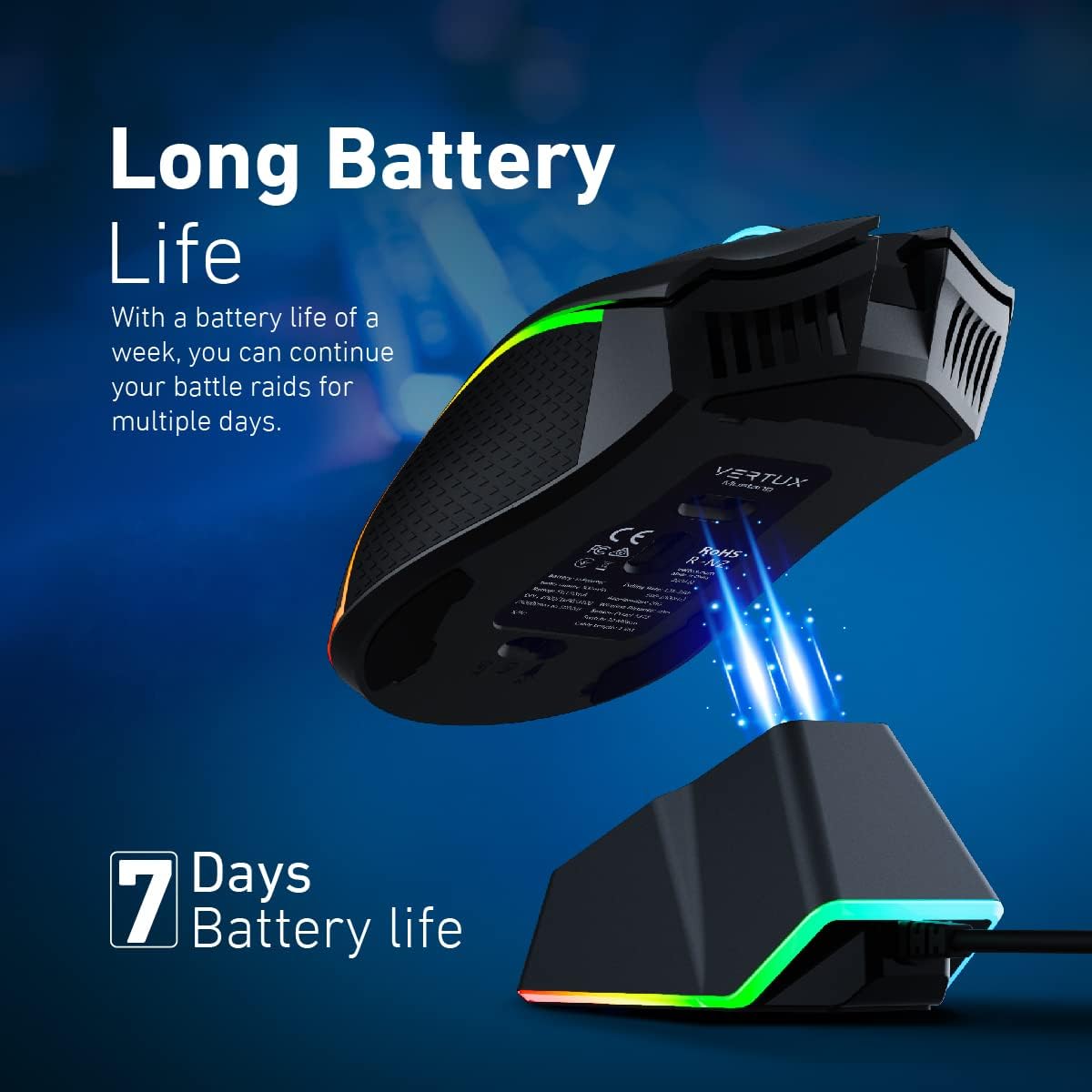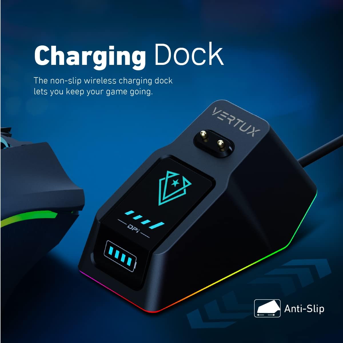 Vertux Mustang Wireless Gaming Mouse Charging Dock 1000 DPI Optical Sensor 7 Programmable Buttons RGB Light Wireless Gaming Mouse Long Battery Gaming Mouse Black