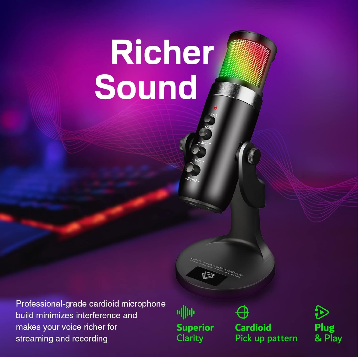 ✅ • Richer Sound: Professional-grade cardioid microphone build minimizes interference and makes your voice richer for streaming and recording.