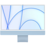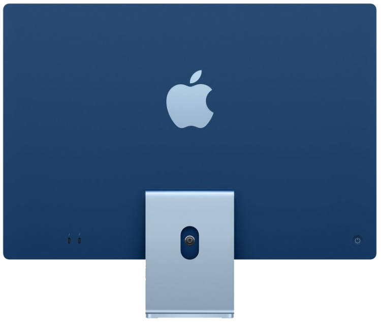 The blue 24-inch iMac features a set of three studio-quality microphones that reduce feedback and eliminate background noise with beamforming technology. It includes a completely redesigned 6-speaker audio system that, along with advanced algorithms, delivers an immersive experience.