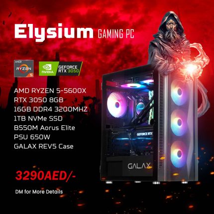 Elysium Gaming PC AMD Ryzen 5 5600X, RTX 3050 8GB, 16GB RAM, 1TB SSD, Windows 10, RGB Case