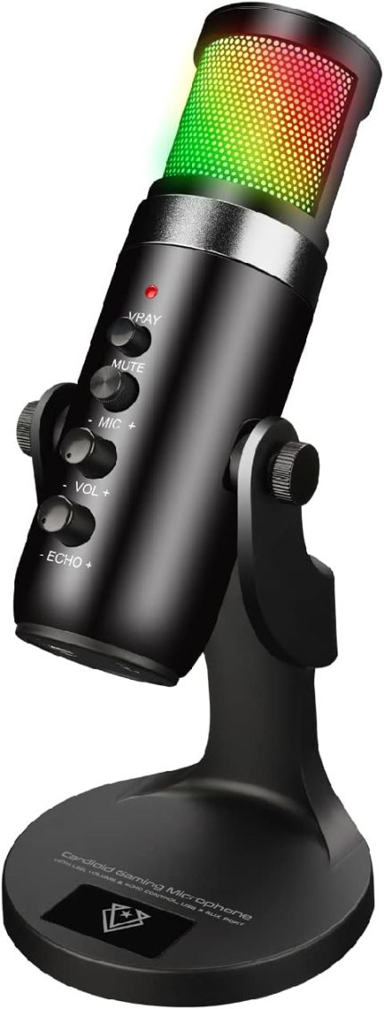 Vertux Unidirectional Hyper Sensitive Cardioid Gaming Microphone USB Condenser Gaming Microphone | [2 Years-Warranty] PC, PS4 and Mac | Multi LED Light Effect – Black