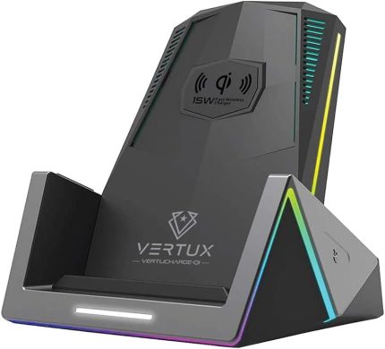 Vertux Qi 15W PRO GAMING WIRELESS CHARGING STATION | 15W Qi Wireless Charging Stand 18W USB-C Power 8 RGB Lighting Modes Fast Wireless Charging Qi-Enabled Smartphones – Black