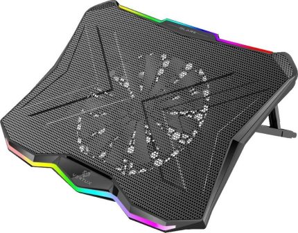 Vertux Glare Quiet RGB Cooling Laptop Stand With Rainbow LED Lights, Fan Speed -800RPM ± 10%, Fan Airflow -47CFM, Fan Noise -22dB, With Multi Height Adjustment | VE.GLARE.NC