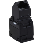 100-213-24 EXCEL CAT6 ANGLED UTP TOOLLESS JACK 180deg-BLACK – PK24 100-213 Excel Cat6 UTP Unscreened Angled Keystone Jack Toolless Black, available as part of our range of excel Cat6 keystone jacks for RJ45 network connections. The angled design of the socket face makes this product ideal for high density frames. Traditional horizontal patch cable management bars can be removed or reduced in number as the leads follow a natural route to the left or right of the panel and the cabinets vertical management. To the rear of the socket the design is exactly the same as the excel keystone range, enabling standard termination and cable dressing practices to be followed.