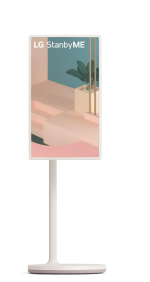 27ART10AKPL 27 Stand By Me Monitor LG 27ART10AKPL StanbyME Smart Touch Screen – Rollable – 3hr Wireless Runtime – Rotate, Swivel, Tilt, Adjust Options – LCD Display – Full HD Resolution (1,920×1,080) – a7 Gen5 Processor – 60Hz Native Refresh – Resolution Upscaler – AI Sound – Bluetooth Surround Ready – HDR10 – HLG – Dynamic Tone Mapping – Magic Explorer – webOS – LG Content Store – LG Channels – Home Dashboard – Multiple Streaming Platforms – Full Web Browser – Sports Alert – LG ThinQ AI – 2.0 Channel 10W Speakers – Side Firing – Wi-Fi – IP Control – 1x USB 2.0 – Bluetooth – 1x HDMI – CEC – NFC – Accessories Include Stand, Simple IR Remote and Battery, Power Cable, Quick Start Guide, E-Manual – (24.4″W x 15.60″D x 49.80″H) – (Calming Beige)