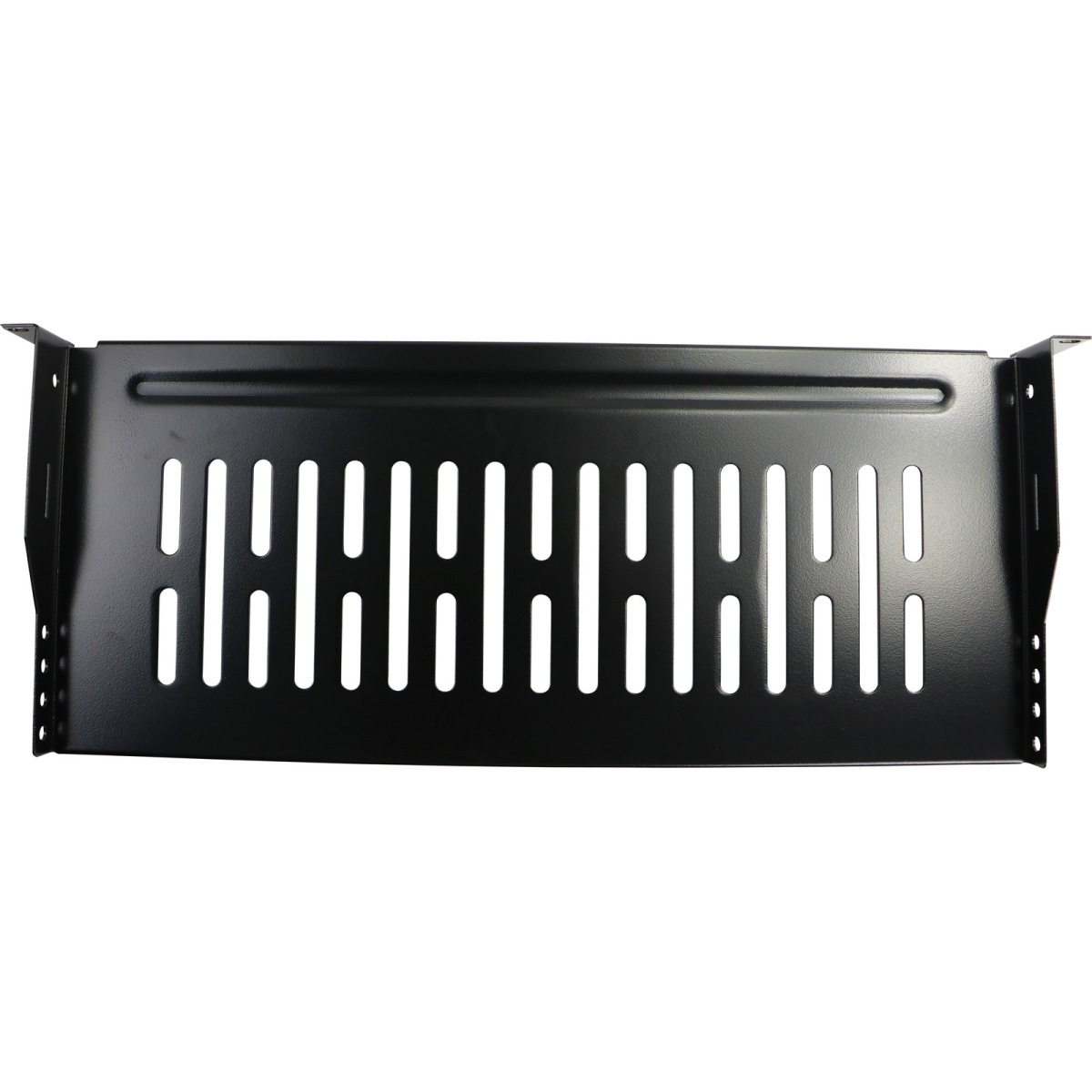 542-020-BK Excel Environ 1U Cantilever Shelf-190mm-Black Environ Cantilever Shelves can be used to support both active and non-active data equipment within the rack that is not 19″ rack mountable, these shelves are fitted to the front 19″ profiles using M6 hardware and are vented which allows for air circulation around the equipment.