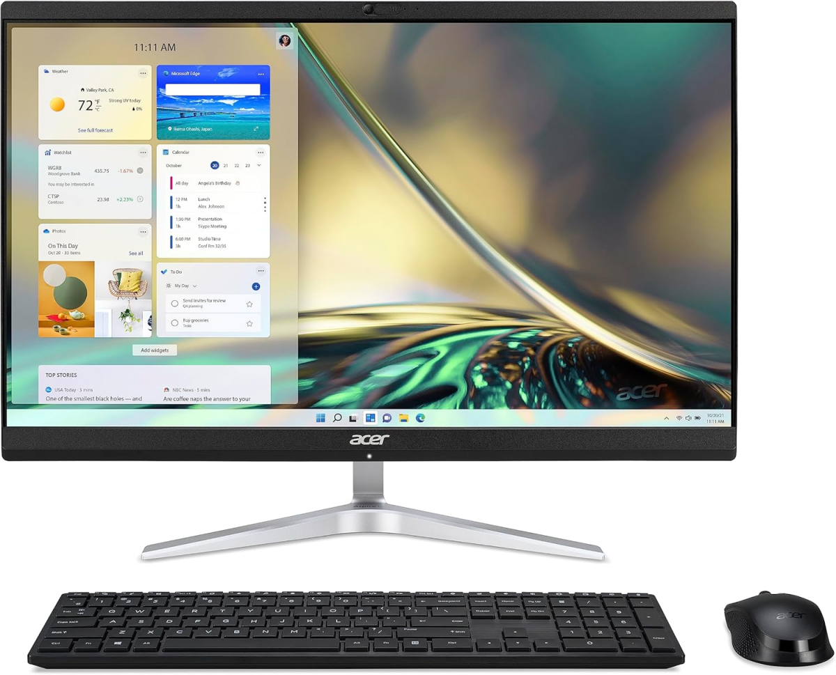 Acer AIO Aspire C24 i5-1240P/8GB/512GBSSD/23.8″FHD/SHD/DOS Design and Build: The ACER C24-1750 All-in-One (AIO) desktop is a sleek and modern solution for users seeking a powerful, space-saving computer. Encased in a stylish black finish, this AIO is designed to blend seamlessly into any home or office environment. The minimalistic design, with its slim profile and compact stand, maximizes desk space while providing an elegant look. The 23.8-inch display is the focal point of the design, offering a clean and clutter-free setup by integrating all the components behind the screen.