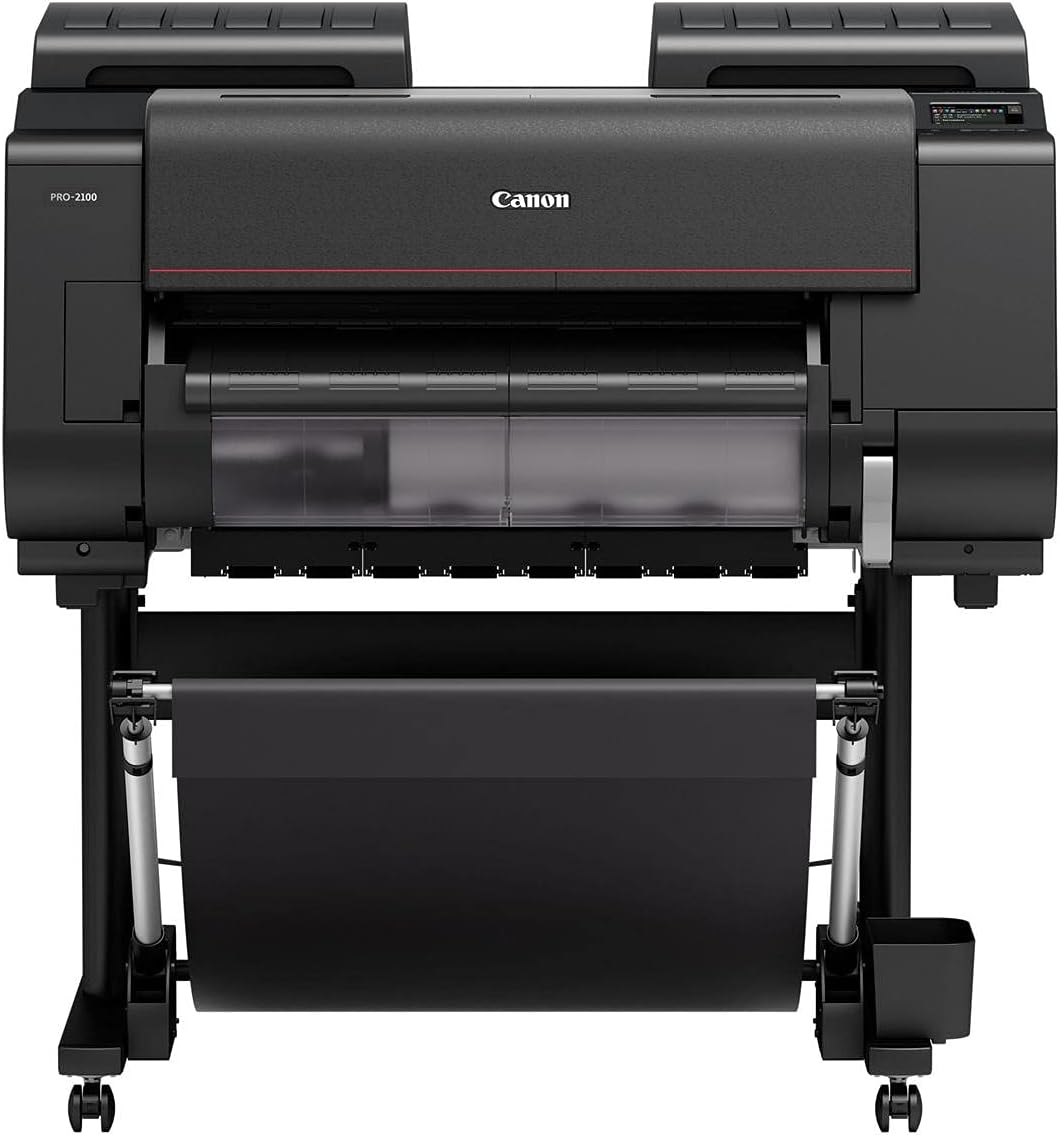 Canon imagePROGRAF PRO-2100 The 24-inch imagePROGRAF PRO-2100 printer is designed to exceed expectations for image quality and color consistency in a large format printer. The use of new a 1.28-inch wide 12-channel integrated compact print head, LUCIA PRO ink set plus Chroma Optimizer, a high-precision mechanical platform and the L-COA PRO high-speed image processing engine achieves a balance between exceptional print quality and speed.