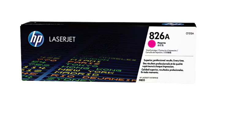 CF313A HP 826A Magenta Original LaserJet Toner Cartridge Produce standout business documents with glossy, photo-quality color. HP ColorSphere technology delivers consistent, professional color. Keep business productivity high—avoid wasted time and supplies with reliable Original HP toner cartridges.