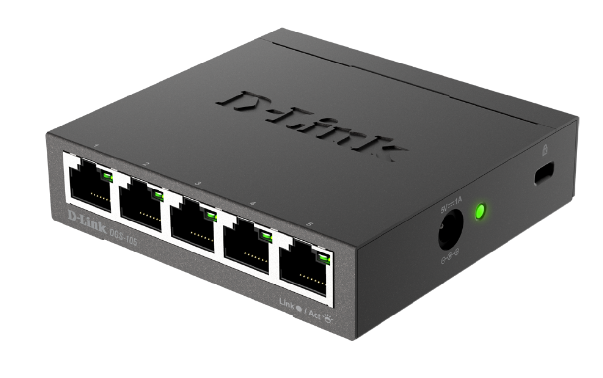 D-Link 5 Port Gigabyte Switch DGS105D The DGS-105 5-Port Gigabit Unmanaged Desktop Switch offers an economical way for SOHO and small and medium businesses to benefit from the increased bandwidth of Gigabit Ethernet. It provides five Gigabit ports for easy expansion of your network and a quick way to upgrade your network to Gigabit connectivity.