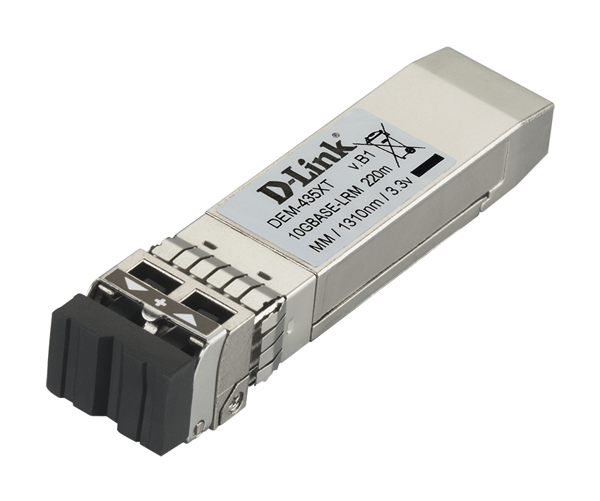 DEM-435XT-DD 10GBASE-LR SFP+ Transceiver The transceivers use the Enhanced Small Formfactor Pluggable format (SFP+). The SFP+ form factor is smaller than other form factors such as Xenpak, X2, and 10G XFP, ensuring lower costs, lower power disruption, and higher port density. They provide the necessary signal amplification for data to be transmitted to the network cable from the port, and vice versa, for the port to receive data from the network cable.