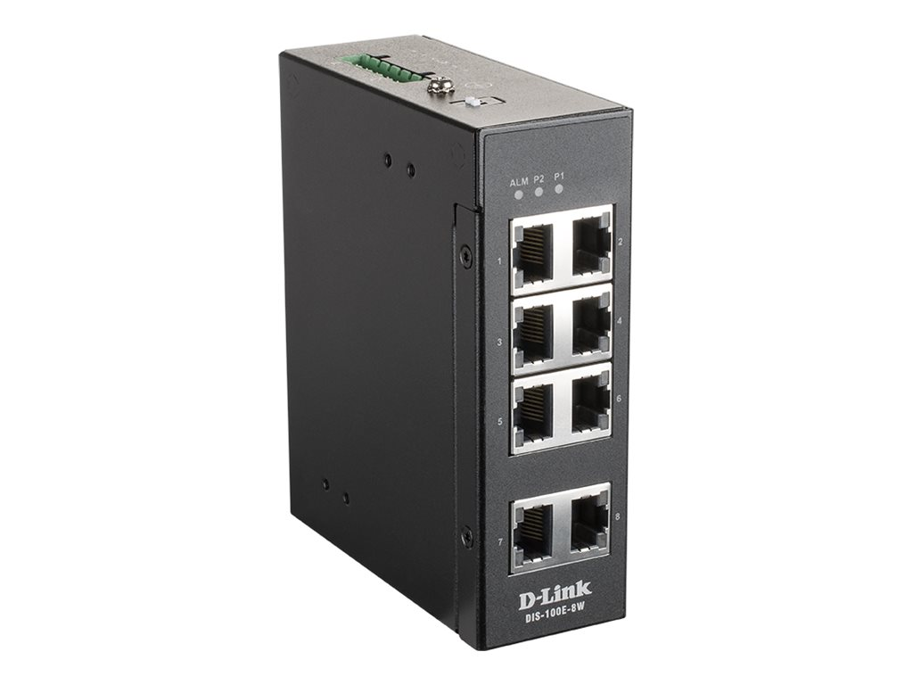 DIS-100E-8W Industrial Fast Ethernet Unmanaged Switch Expansion / Connectivity: 8 x 100Base-TX RJ-45 Power: Internal power supply Miscellaneous: 25 years Dimensions & Weight: 11.78 cm D-Link DIS 100E-8W – Switch – unmanaged – 8 x 10/100 – DIN rail mountable, wall-mountable – DC power