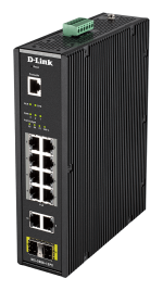 DIS-200G-12PS Industrial Gigabit Smart Managed PoE Switch 8 x 10/100/1000Base-T PoE+ ports, 2x 10/100/1000Base-T ports, 2 x SFP ports RJ-45 Console port Easy-to-control management interfaces and security Withstands severe temperatures Compliant with vibration, shock, free-fall testing