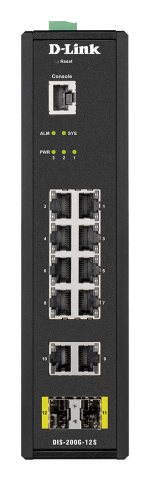 DIS-200G-12S Industrial Gigabit Smart Managed Switch 10 x 10/100/1000Base-T ports, 2 x SFP ports RJ-45 Console port Easy-to-control management interfaces and security Withstands severe temperatures Compliant with vibration, shock, free-fall testing