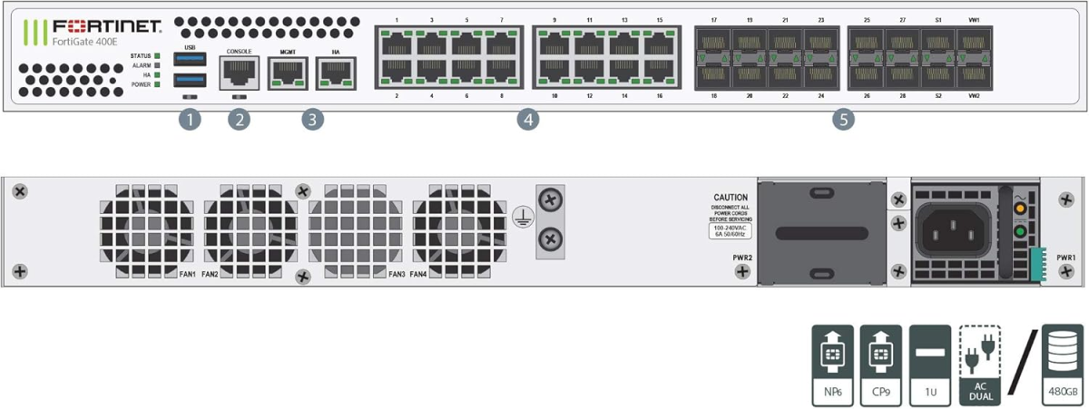 Fortinet FortiGate 401F – security appliance FG-401F-BDL-950-60 The Fortinet FortiGate 400F Series provides an application-centric, scalable and secure SD-WAN solution with Next Generation Firewall (NGFW) capabilities for mid-sized to large enterprises deployed at the campus or branch level. Protects against cyber threats with system-on-a-chip acceleration and industry-leading secure SD-WAN in a simple, affordable and easy-to-deploy solution. Fortinet’s Security-Driven Networking approach provides tight integration of the network to the new generation of security. Key Features: Includes 3 Year FortiCare Premium And FortiGuard Unified Threat Protection Network Monitoring Full Visibility And Protection Security Fabric Integration