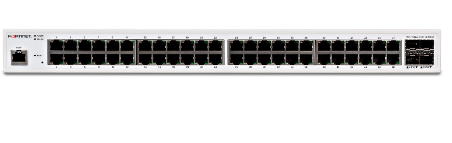 FS-248D FortiSwitch-248D Layer 2/3 FortiGate switch controller compatible switch with 48 x GE RJ45 ports, 4 x GE SFP Mid-range layer 3 capable “Secure Simple Scalable” Ethernet switch designed for desktop to wiring closet. FortiLink enabled, the 200 series integrates with our FortiGate NGFW to offer the most secure Ethernet solution in the market.