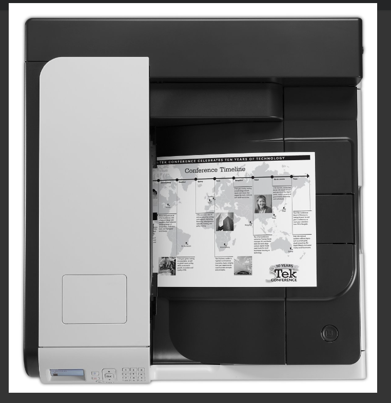HP Laserjet Enterprise 700 M712DN Enable high-volume, black-and-white printing on paper sizes up to A3—and capacity up to 4600 sheets.2 Control costs with energy-saving features and two-sided printing.3 Protect sensitive business data and centrally manage printing policies.