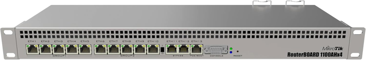 RB1100AHx4 Dude Edition Powerful 1U rackmount router with 13x Gigabit Ethernet ports, 60GB M.2 drive for Dude database