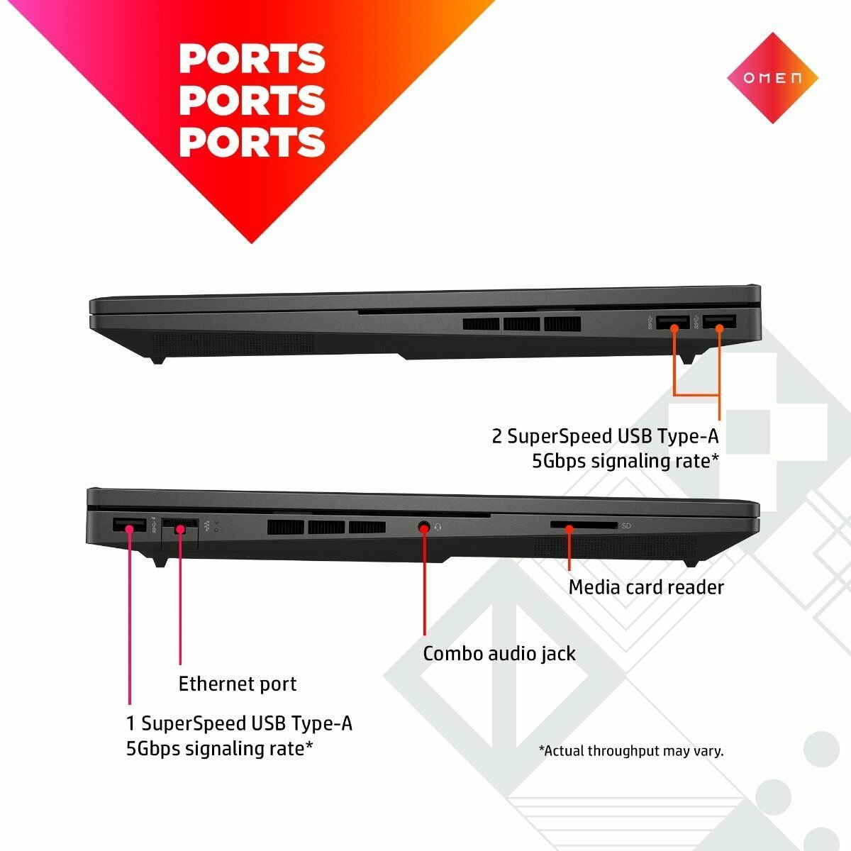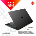 - External I/O Ports : For best results with HP Sleep and Charge, use a USB charging protocol standard cable or cable adapter with an external device.,SuperSpeed USB 20Gbps is not available., For optimal performance and battery chargeability while gaming and rendering, use the power adapter that ships with the PC. You can use the 100W/20V Type-C adapter or power bank when running light loading tasks. System-off charging is only supported on 20V Type-C adapter or power bank.
