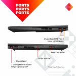 - Ports : 2 Thunderbolt™ 4 with USB4™ Type-C® 40Gbps signaling rate (USB Power Delivery, DisplayPort™ 1.4, HP Sleep and Charge); 1 SuperSpeed USB Type-A 5Gbps signaling rate (HP Sleep and Charge); 2 SuperSpeed USB Type-A 5Gbps signaling rate; 1 HDMI 2.1; 1 mini DisplayPort™; 1 RJ-45; 1 AC smart pin; 1 headphone/microphone combo