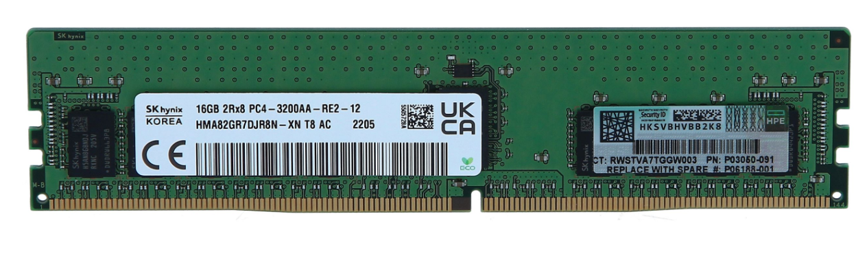 (P03050-091)HP 16GB 2RX8 PC4-3200 RDIMM HP Proliant Gen9 and Gen10 Servers. DRAM quality and reliability are more important now than ever. Industry trends such as server virtualization – cloud computing – the use of large database applications – and high-performance computing have all increased the need for higher capacity memory with greater reliability and uptime. HP SmartMemory is a unique technology introduced in HP Proliant Gen8 Servers that unlocks certain features available only with HP Qualified Server memory in Gen9 and Gen10 servers also. HP SmartMemory enables Proliant Gen9 and Gen10 systems to reliably identify and verify whether installed memory has passed the rigorous HP qualification and testing processes.