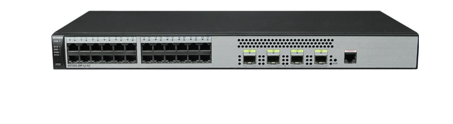 S5720S-28P-LI-AC Huawei network switch Managed L2/L3 Gigabit Ethernet Huawei S5720S-28P-LI-AC. Switch type: Managed, Switch layer: L2/L3. Basic switching RJ-45 Ethernet ports type: Gigabit Ethernet (10/100/1000), Basic switching RJ-45 Ethernet ports quantity: 24, Installed SFP modules quantity: 4. Rack mounting