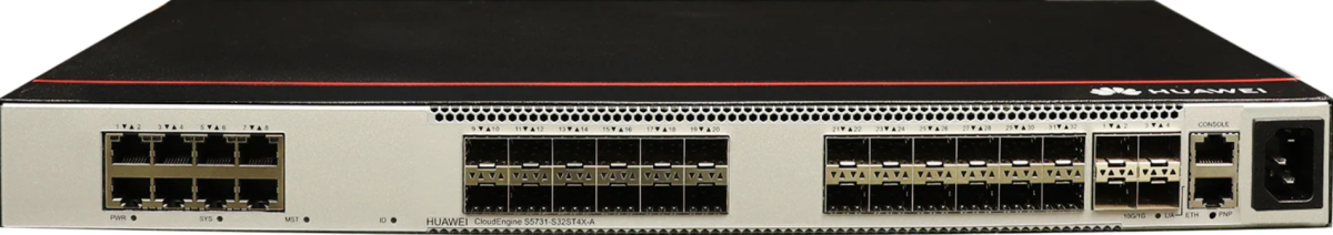 Huawei S5731S-S32ST4X-A1 switch with 8-ports 10/100/1000BASE-T, 24-ports 100/1000BASE-X, 4-ports 10GE SFP+