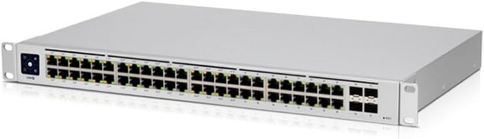 USW 48 POE Ubiquiti Networks UniFi 48-Port Gigabit PoE+ Compliant Managed Switch Grow your business’s network capacity to support computers, printers, storage, and power over Ethernet devices with the UniFi 48-Port Gigabit PoE+ Compliant Managed Switch from Ubiquiti Networks. Featuring a desktop or rack-mountable design, this Layer 2 managed switch includes 48 Gigabit Ethernet ports, 32 of which are PoE+ complaint and support up to 32W per port to operate compatible devices such as security cameras and IP phones. Four Gigabit SFP ports are also available for fiber uplink connections. Network traffic with connected devices can be further optimized using the UniFi Network Controller, which offers a comprehensive suite of features to configure, control, and monitor performance. Additionally, its fanless design helps the switch to operate silently in the background of your home office or business.